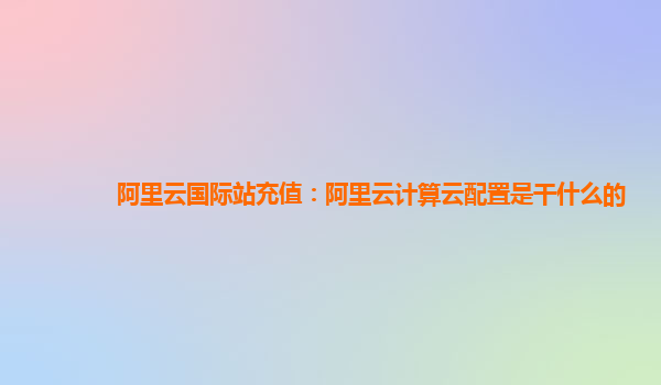 阿里云国际站充值:阿里云计算云配置是干什么的