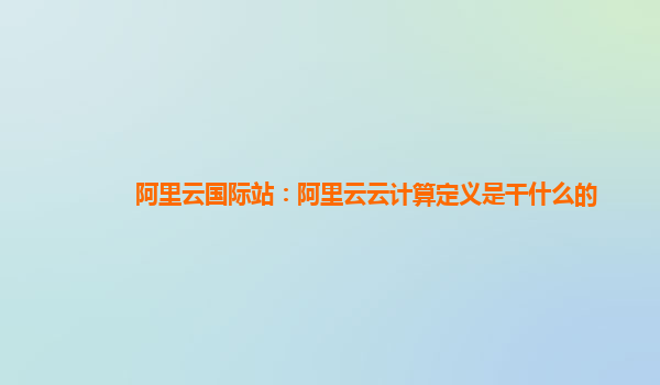阿里云国际站:阿里云云计算定义及其优势