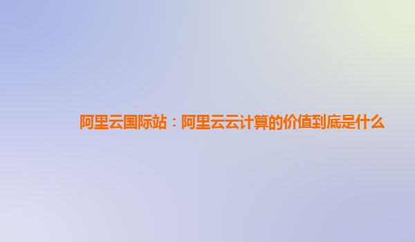 阿里云国际站:阿里云云计算的价值到底是什么