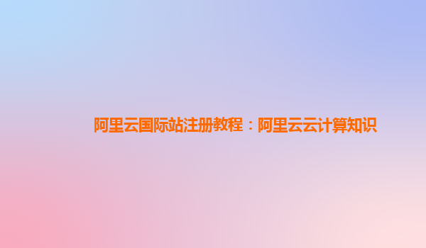 阿里云国际站注册教程:阿里云云计算知识