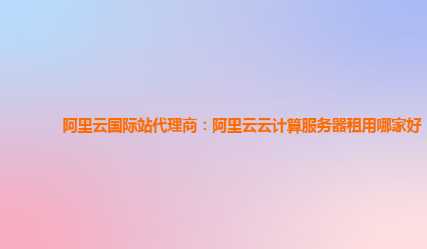 阿里云国际站代理商:阿里云云计算服务器租用哪家好
