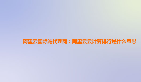 阿里云国际站代理商:阿里云云计算排行是什么意思