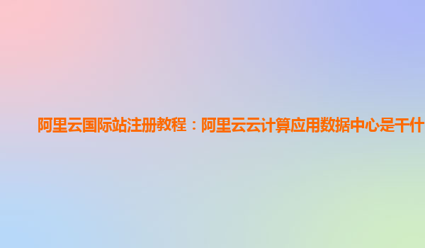 阿里云国际站注册教程:阿里云云计算应用数据中心是干什么的
