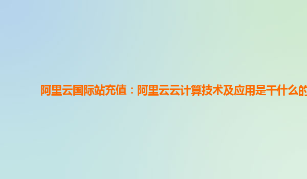 阿里云国际站充值:阿里云云计算技术及应用