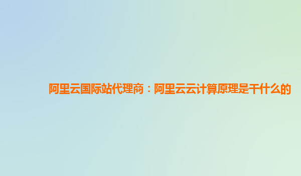 阿里云国际站代理商:阿里云云计算原理是干什么的