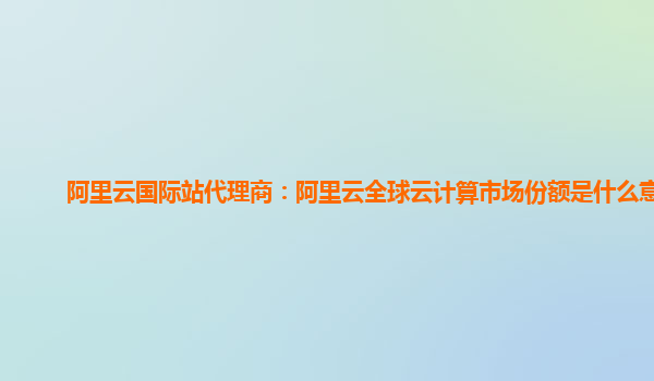阿里云国际站代理商:阿里云全球云计算市场份额分析