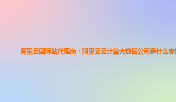 阿里云国际站代理商:阿里云云计算大数据公司是什么意思