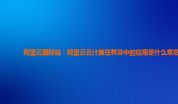 阿里云国际站:阿里云云计算在教育中的应用