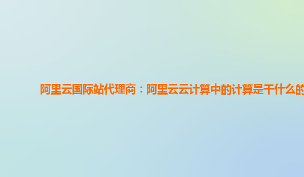 阿里云国际站代理商:阿里云云计算中的计算是干什么的