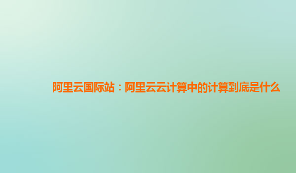 阿里云国际站:阿里云云计算中的计算到底是什么