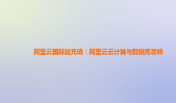 阿里云国际站充值:阿里云云计算与数据库的优势与应用