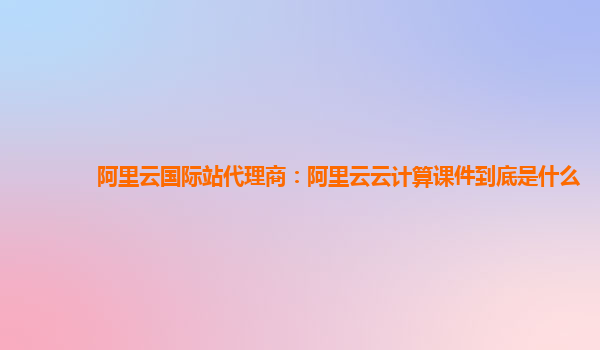 阿里云国际站代理商:阿里云云计算课件到底是什么