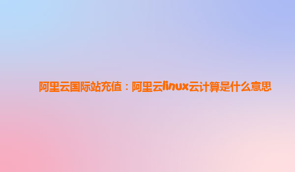 阿里云国际站充值:阿里云Linux云计算是什么意思?