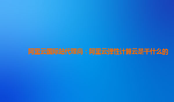 阿里云国际站代理商:阿里云弹性计算云是干什么的?