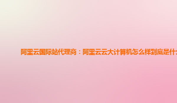 阿里云国际站代理商:阿里云云大计算机怎么样到底是什么