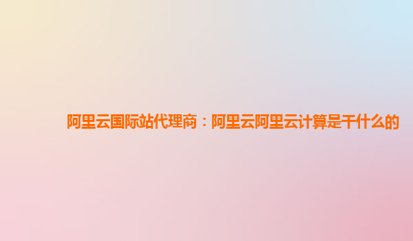 阿里云国际站代理商:阿里云计算是干什么的?