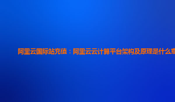 阿里云国际站充值:阿里云云计算平台架构及原理解析