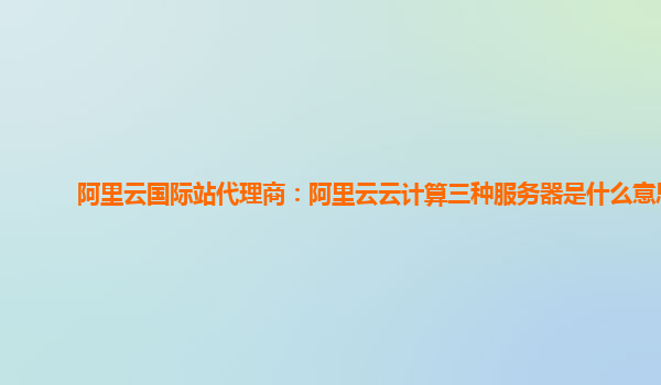 阿里云国际站代理商:阿里云云计算三种服务器是什么意思