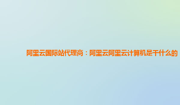 阿里云国际站代理商:阿里云计算机是干什么的
