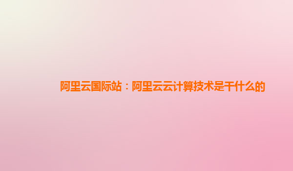 阿里云国际站:阿里云云计算技术是干什么的