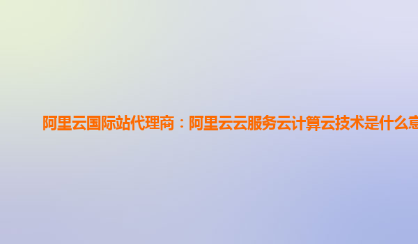 阿里云国际站代理商:阿里云云服务云计算云技术是什么意思
