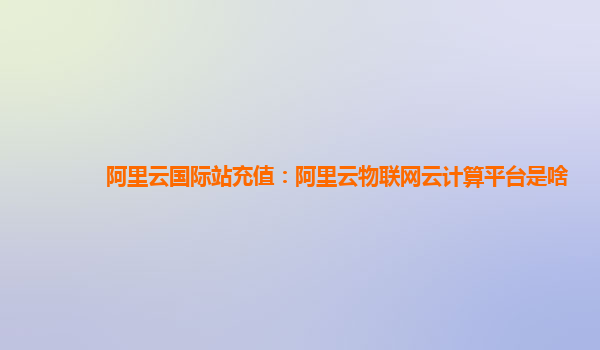 阿里云国际站充值:阿里云物联网云计算平台是什么
