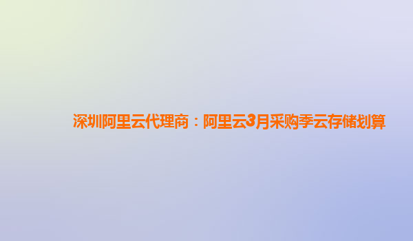 深圳阿里云代理商:阿里云3月采购季云存储划算
