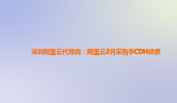 深圳阿里云代理商:阿里云3月采购季CDN续费优势