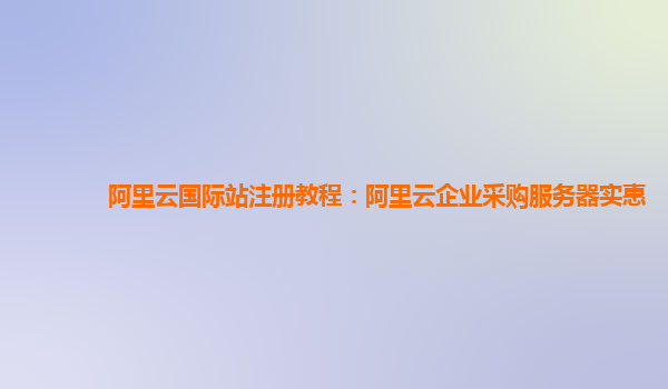 阿里云国际站注册教程:阿里云企业采购服务器实惠