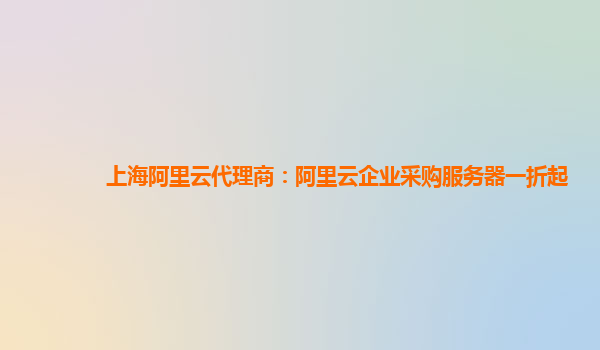 上海阿里云代理商:阿里云企业采购服务器一折起