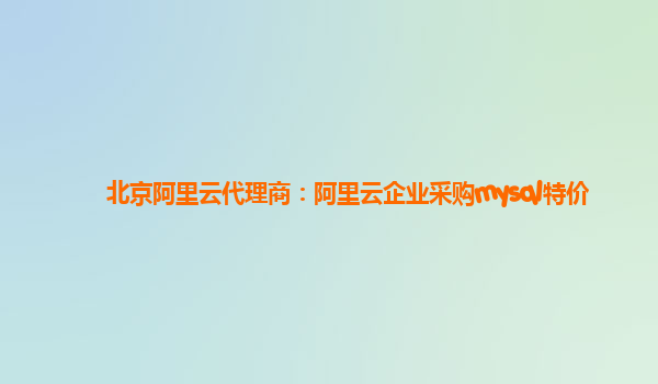 北京阿里云代理商:阿里云企业采购MySQL特价