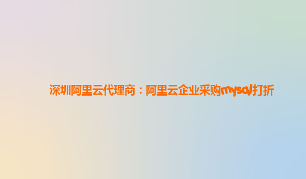 深圳阿里云代理商:阿里云企业采购MySQL打折优惠