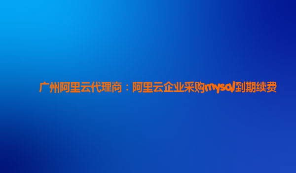 广州阿里云代理商:阿里云企业采购MySQL到期续费