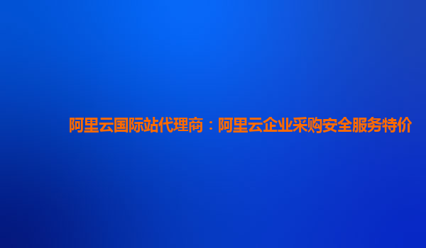 阿里云国际站代理商:阿里云企业采购安全服务特价