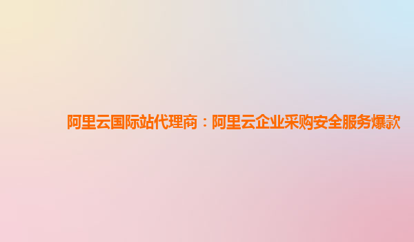 阿里云国际站代理商:阿里云企业采购安全服务爆款