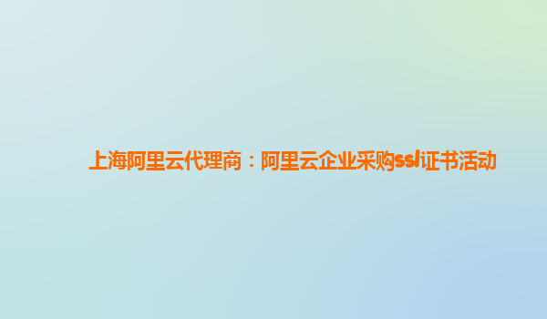 上海阿里云代理商:阿里云企业采购SSL证书活动