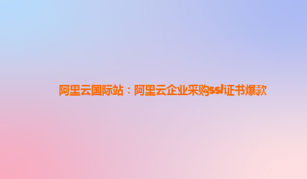 阿里云国际站:阿里云企业采购SSL证书爆款