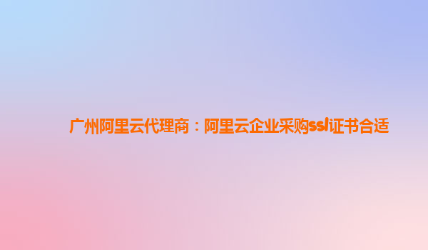 广州阿里云代理商:阿里云企业采购SSL证书的优势