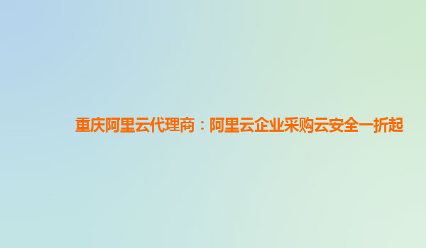 重庆阿里云代理商:阿里云企业采购云安全一折起