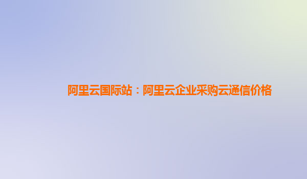 阿里云国际站:阿里云企业采购云通信价格