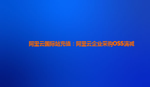 阿里云国际站充值:为企业采购OSS满减带来更优体验