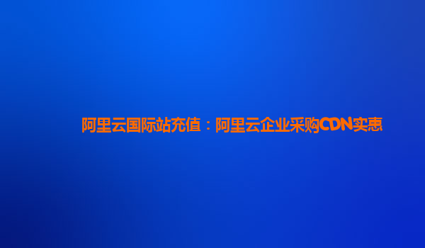 阿里云国际站充值:阿里云企业采购CDN实惠