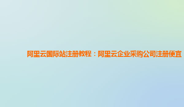 阿里云国际站注册教程:阿里云企业采购公司注册便宜