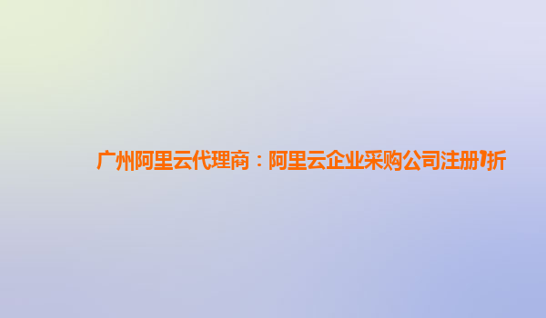广州阿里云代理商:阿里云企业采购公司注册1折优惠,打造高效云计算服务
