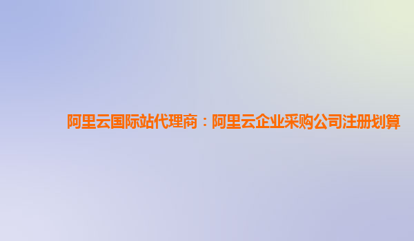 阿里云国际站代理商:阿里云企业采购公司注册划算