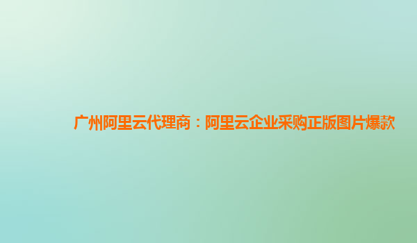 广州阿里云代理商:阿里云企业采购正版图片爆款