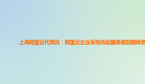 阿里云企业采购高配服务器到期续费的优势与好用之处