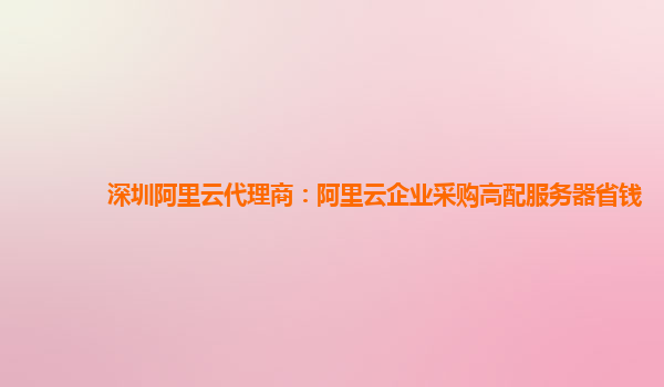 深圳阿里云代理商:阿里云企业采购高配服务器省钱