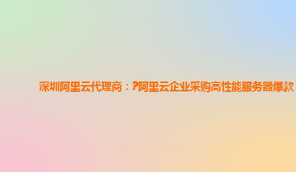 深圳阿里云代理商:阿里云企业采购高性能服务器爆款