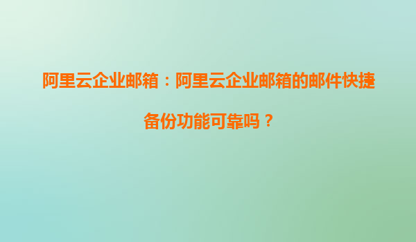 随着企业信息化程度的不断提升,邮箱已经成为企业沟通与协作的重要工具。而阿里云企业邮箱凭借其稳定性、便捷性和强大的功能,逐渐成为众多企业的首选邮箱服务。阿里云企业邮箱不仅提供丰富的企业管理功能,还具有多项便捷实用的附加功能,其中“邮件快捷备份”功能尤为突出。
